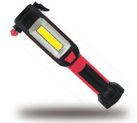 LEDの種類の1つでLEDチップを高反射率の鏡面金属基板に直接貼り付けることで実現した高効率の面光源技術で高出力で高い輝度を持ち、広範囲に光を照射することが可能です。COB関連商品では、角度を変えられるスタンドライトの高機能2WAYライトが、工具用品の一つとして販促品やノベルティとして人気です。今までのLEDよりもはるかに明るく進化したLEDライトで、従来のライトよりもムラなく広範囲を照らします。