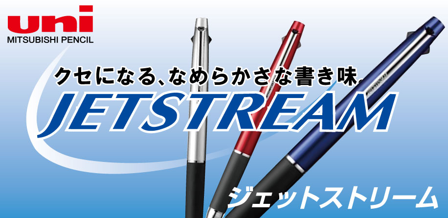 三菱鉛筆のジェットストリームのボールペンは一度書いたらやめられないなめらかな書き味を徹底的に追求した先進の機能と次世代のヒット商品です。1色から4色、または多機能ボールペンまで種類が豊富でご予算や用途に合わせてお選びいただけます。おしゃれなオリジナルデザインも小ロットから企業や店舗、学校などのロゴやマークを1色からフルカラー4色までロゴ名入れ等が可能です。ジェットストリーム名入れ人気商品として記念品はもちろんノベルティ、販促品、来場粗品などとしてご使用いただければ一層宣伝効果があり喜ばれます。
