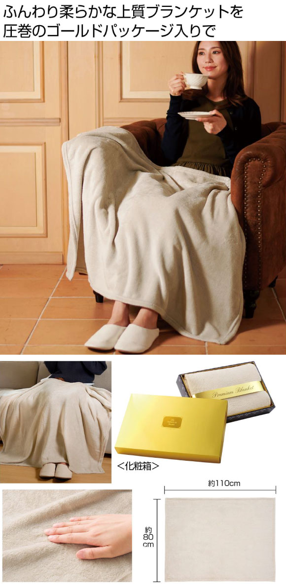 プレミアムブランケット(ライトグレー)は大好評のゴールドパッケージ入りのブランケット。ずっと触れていたくなる、なめらかでとろみのある手ざわりデスクワークやリラックスタイムにやわらかなぬくもりを。ゴールドの帯を巻いて、箱を開けた時の驚きまでもプレミアム。贈答品に最適な身蓋式の化粧箱がその価値をさらに高めます。