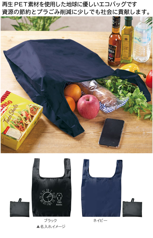 RPET エコバッグはRPET(リサイクルペット)素材使用のエコバッグで資源の節約とプラごみ削減に少しでも貢献。再生PET素材を使用したエコバッグです。SDGs 対応の社会に貢献する商品としてノベルティ、販促品にお薦めします。 販売促進としてノベルティ、販促品用にロゴやマークなどの名入れをし 配布すれば企業やお店のイメージアップや売り上げにつながります。