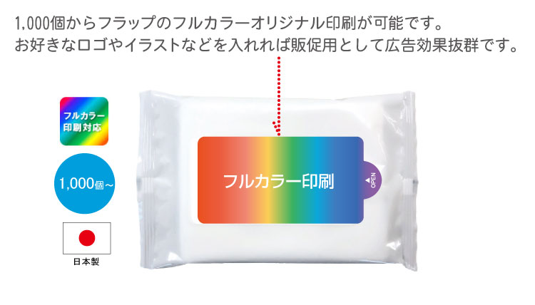 ハンディ 7days ノンアルコール除菌ウェット10枚入り フルカラー名入れ代込みは1000個からフラップにオフセット印刷でフルカラー印刷が可能な除菌シート10枚入りです。エタノール等を配合し、除菌に優れたノンアルコールタイプのウェットティッシュ10枚入りです。販売促進としてノベルティ、販促品用にロゴやマークなどフラップにフルカラー名入れをし 配布すれば企業やお店のイメージアップや売り上げにつながります。