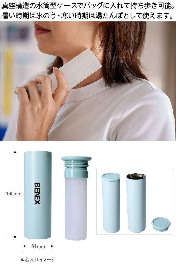 氷のうスティックは真空構造のスリムなスティック型で持ち歩き可能。暑い時期は氷のう・寒い時期は湯たんぽとして年中活躍します。アイシングや防寒に最適な一台です。 ノベルティ、販促品として本体にロゴなどの名入れをすればより一層宣伝効果があります。