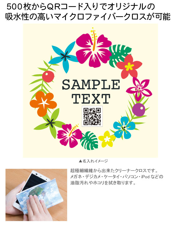 QRコード入りマイクロファイバークロス ノベルティ 販促品 名入れ