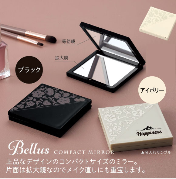ベルスコンパクトミラーは上品なデザインのコンパクトサイズのミラー。 広げると両面鏡付きで片面は拡大鏡なのでメイク直しにも重宝します。