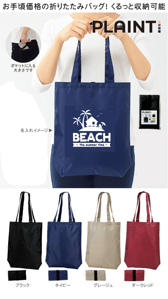 プレントポケットインエコバッグはお手頃価格!くるっと収納 できてポケットにも入る、スマートタイプのエコバッグです。