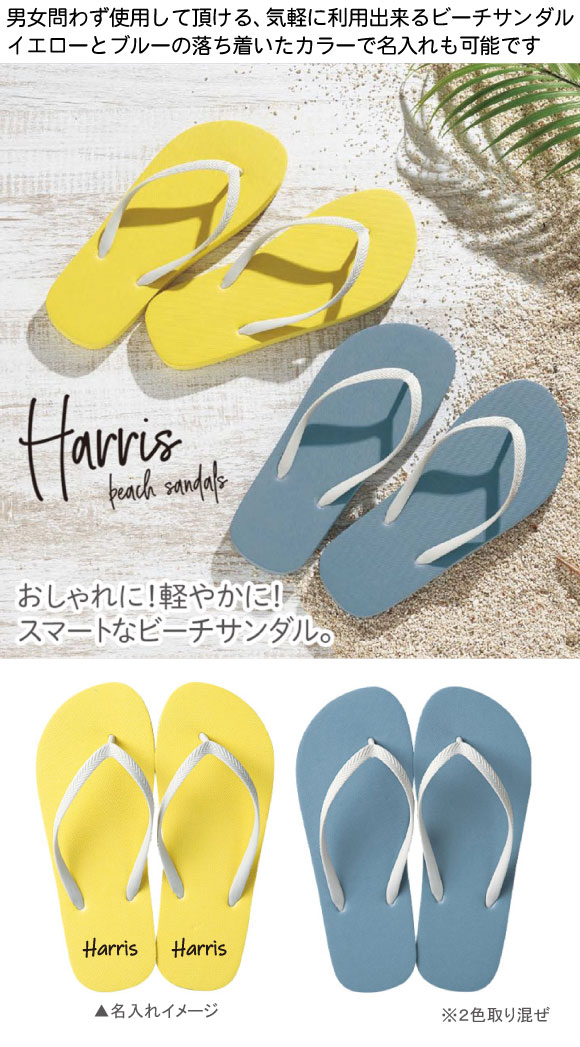 ハリス ビーチサンダル は男女問わず使用して頂ける、気軽に利用出来るビーチサンダル。イエローとブルーの落ち着いたカラーで名入れも可能です