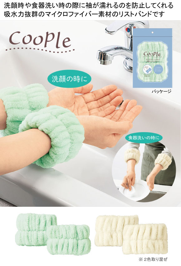 クープルマイクロファイバーリストバンドは洗顔時や食器洗い時の袖濡れ防止に大活躍! 吸水力抜群のマイクロファイバー素材のリストバンドです。