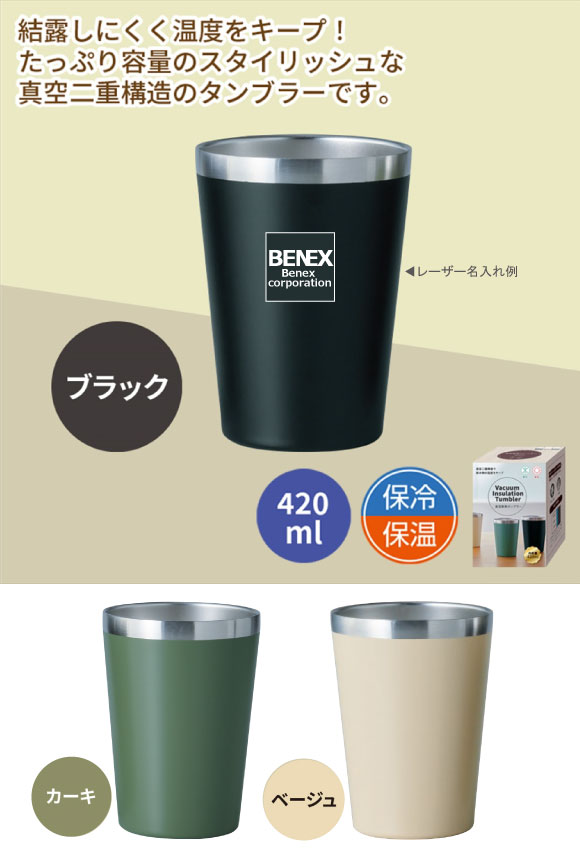 真空断熱タンブラー420mlは結露しにくく温度をキープ!たっぷり容量のスタイリッシュな真空二重構造のタンブラーです。