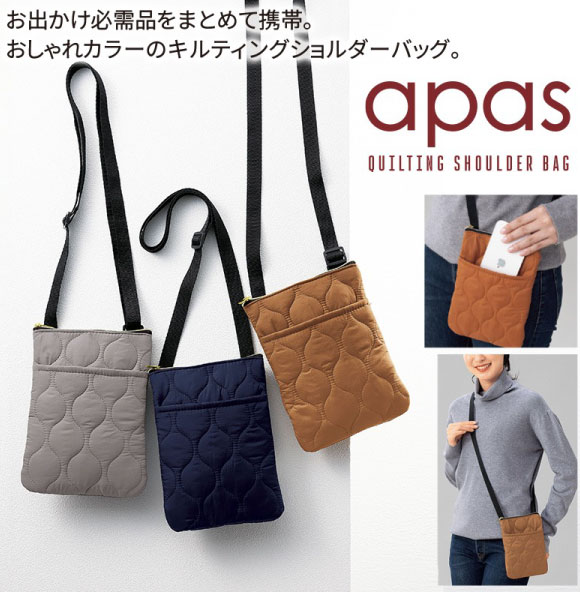 アーパス キルティングショルダーバッグ はお出かけ必需品をまとめて携帯。ポケットにスマホなど入れることができサッと取り出せます。3色取混ぜのおしゃれなカラーのキルティングショルダーバッグ。 口元はファスナー でしっかり閉じるので安心です。