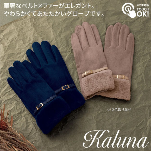 カルーナ 裏起毛ファーグローブは華奢なベルト×ファーがエレガント。やわらかくてあったたかいグローブです。スマホ対応タッチ手袋としてもご利用可能です。