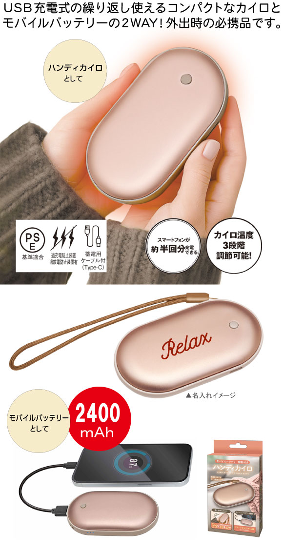 「モバイルバッテリー付きハンディカイロ」ノベルティの名入れについて