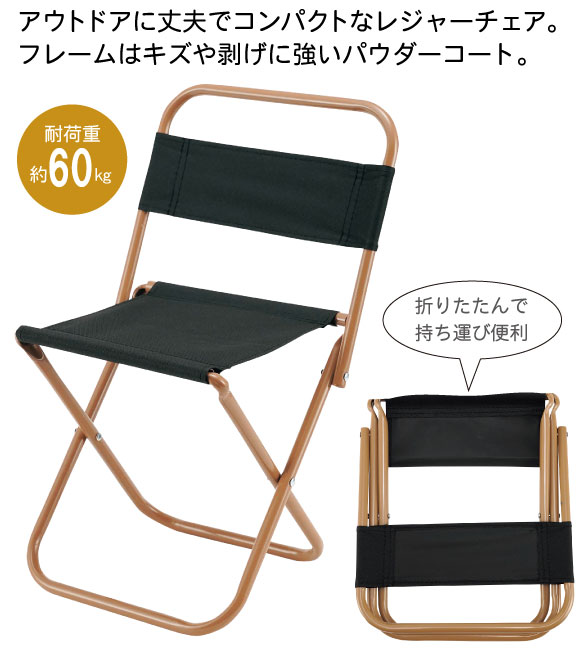 フォールディングコンパクトチェアはすべてのアウトドアに丈夫でコンパクトなレジャーチェア。フレームはキズや剥げに強いパウダーコートを使用。使用後は折りたたんで収納可能。アウトドア商品として背もたれに名入れしてノベルティ、販促品用に配布すれば より一層話題性があります。