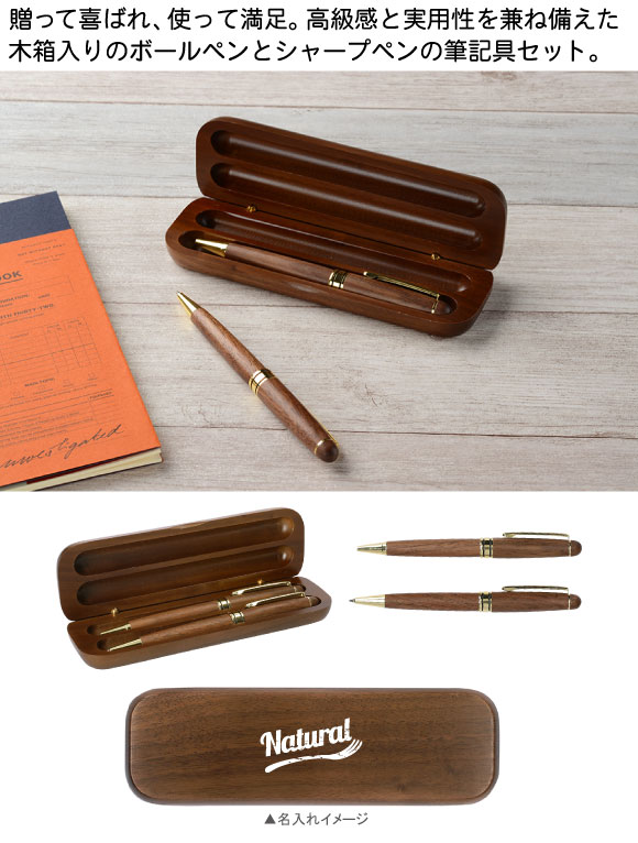 木箱BP&SPは贈って喜ばれ、使って満足。高級感と実用性を兼ね備えた筆記具セット。専用の木箱入りで、大切な方へのギフトや記念品に最適。デスクを格調高く彩る、上質な書き味の一品です。 ノベルティ、販促品として本体にロゴなどの名入れをすればより一層宣伝効果があります。