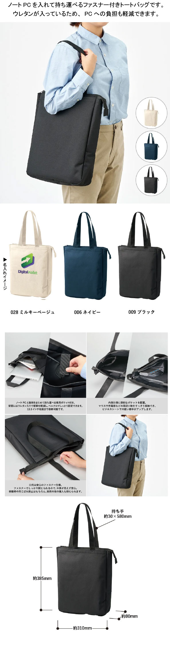 「ノートPCが入れられるファスナートート」の見積りと注文依頼はこちらから
