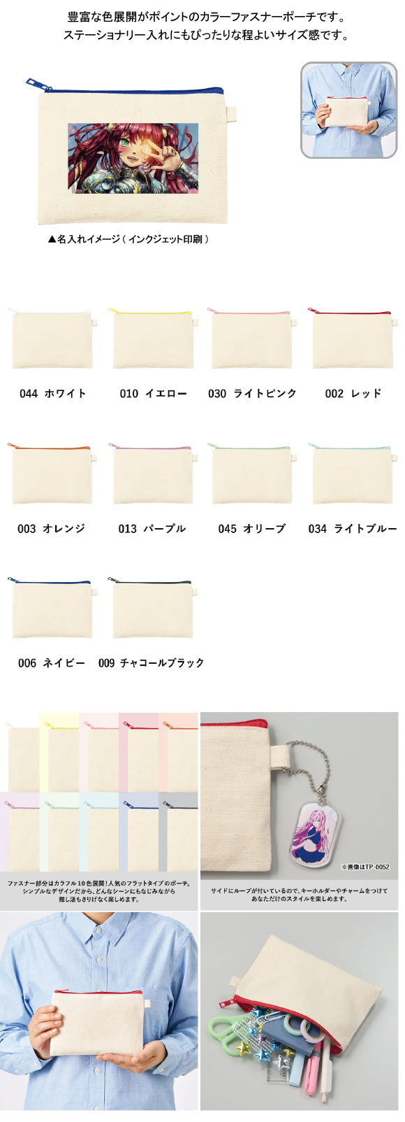 「カラーファスナーキャンバスフラットポーチ(S)」ノベルティの名入れについて