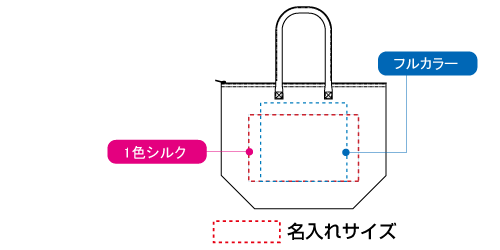 名入れサイズ:1色シルク/W280×H170(mm)または熱転写印刷/W220×H200(mm)