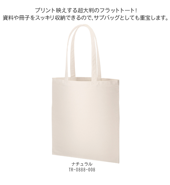 ライトキャンバスフラットバッグ(LL) は柔らかさと耐久性を兼ね備えた生地厚8オンスのキャンバスバッグシリーズです。資料や冊子をスッキリ収納できるので、サブバッグとしても重宝します。ナチュラルカラーは無漂白のエコマーク認定商品です。販売促進としてノベルティ、販促品用にロゴやマークなどの名入れをし 配布すれば企業やお店のイメージアップや売り上げにつながります。