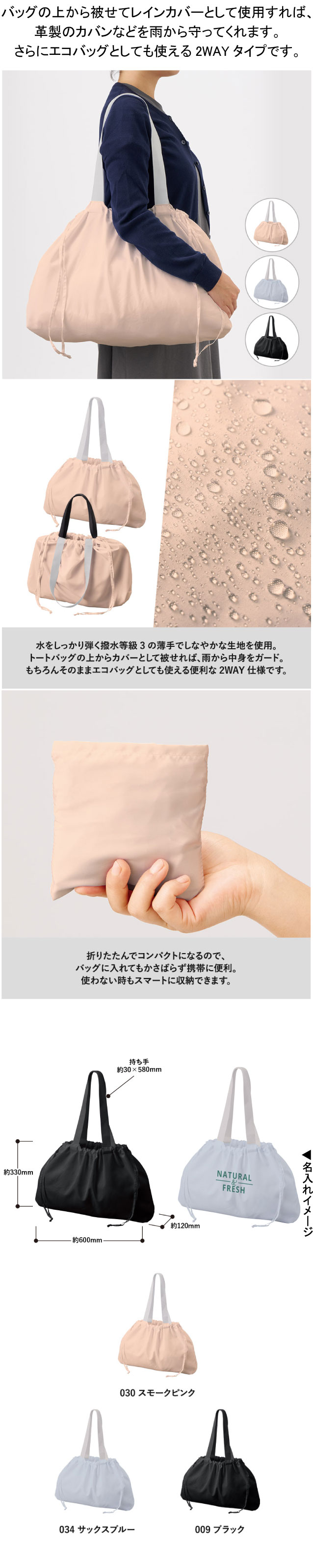レインカバーにもなる撥水バッグ ノベルティ 販促品 名入れ
