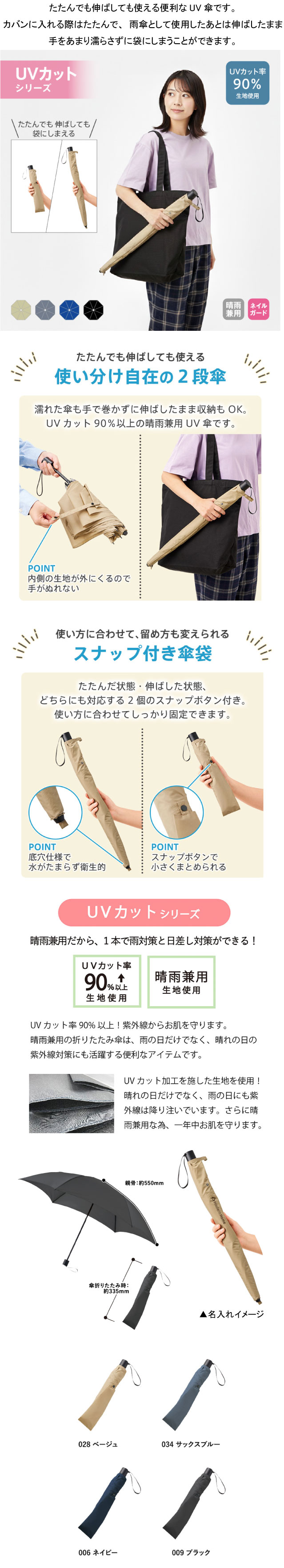 たたんでも伸ばしても使えるUV傘 ノベルティ 販促品 名入れ