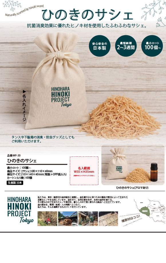 「ひのきのサシェ」ノベルティの名入れについて
